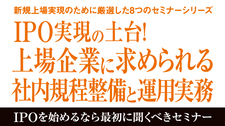 IPOコンサルティング トップ > おすすめIPOセミナー > 受付中 > IPO実現の土台!上場企業に求められる社内規程整備と運用実務