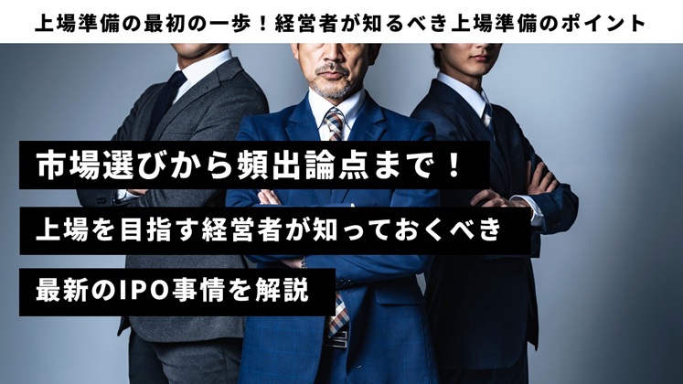 IPOコンサルティング トップ > おすすめIPOセミナー > 受付中 > 上場準備の最初の一歩!経営者が知るべき上場準備のポイント
